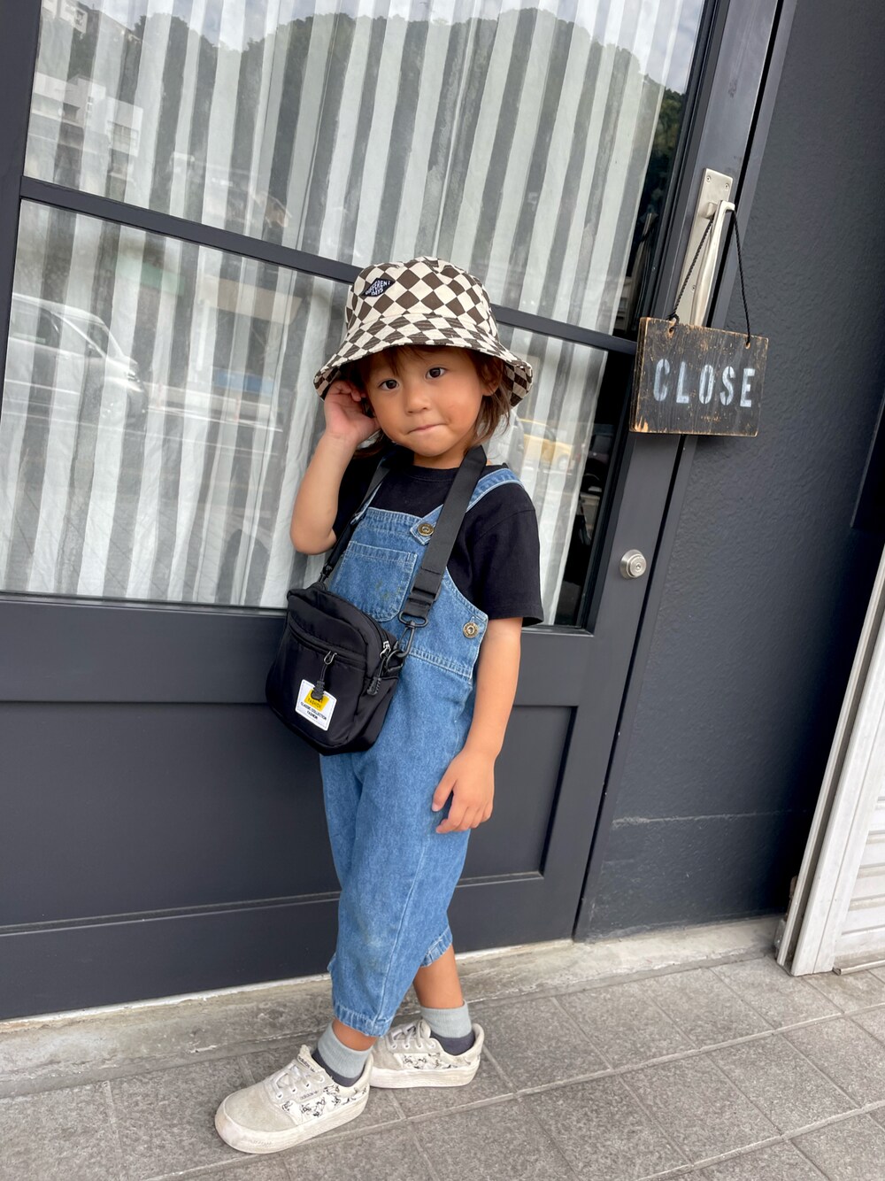スニーカー以外SHEIN🤍🤎💙 cap →549yen overall→2000yen bag →400yen WEARデビューしたけどまだまだやり方がわからない😅