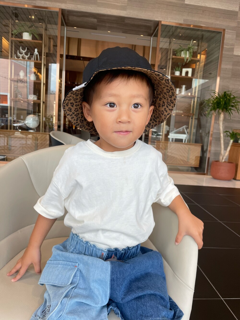 petit main で購入したバケハ👒 リバーシブルで可愛い❤️ 何にでも合う〜👦🏻
