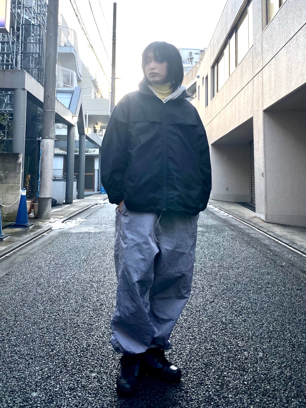 上野一稀のカーゴパンツ「[Massnoun] リンクルウエストゴムパンツ(Gray)」を使ったコーディネート
