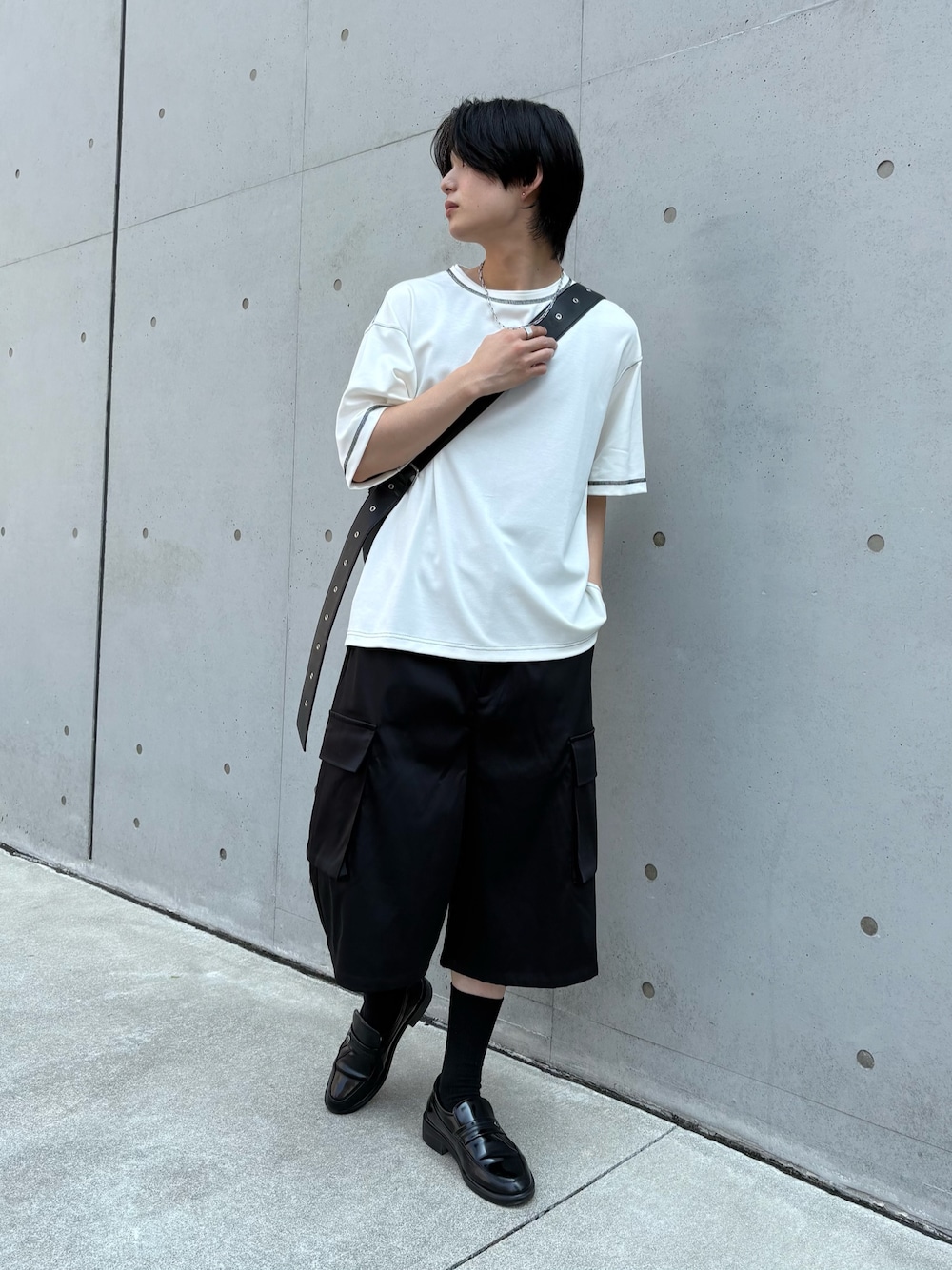 着用スタッフ/ 172cm ◾︎ステッチワークBIG T / Fサイズ着用 ◾︎ルーズフィットカーゴパンツ / Fサイズ着用 ◾︎Ah ステンレスネックレス/Fサイズ着用 ◾︎Ah bracelet / 01 / Fサイズ着用