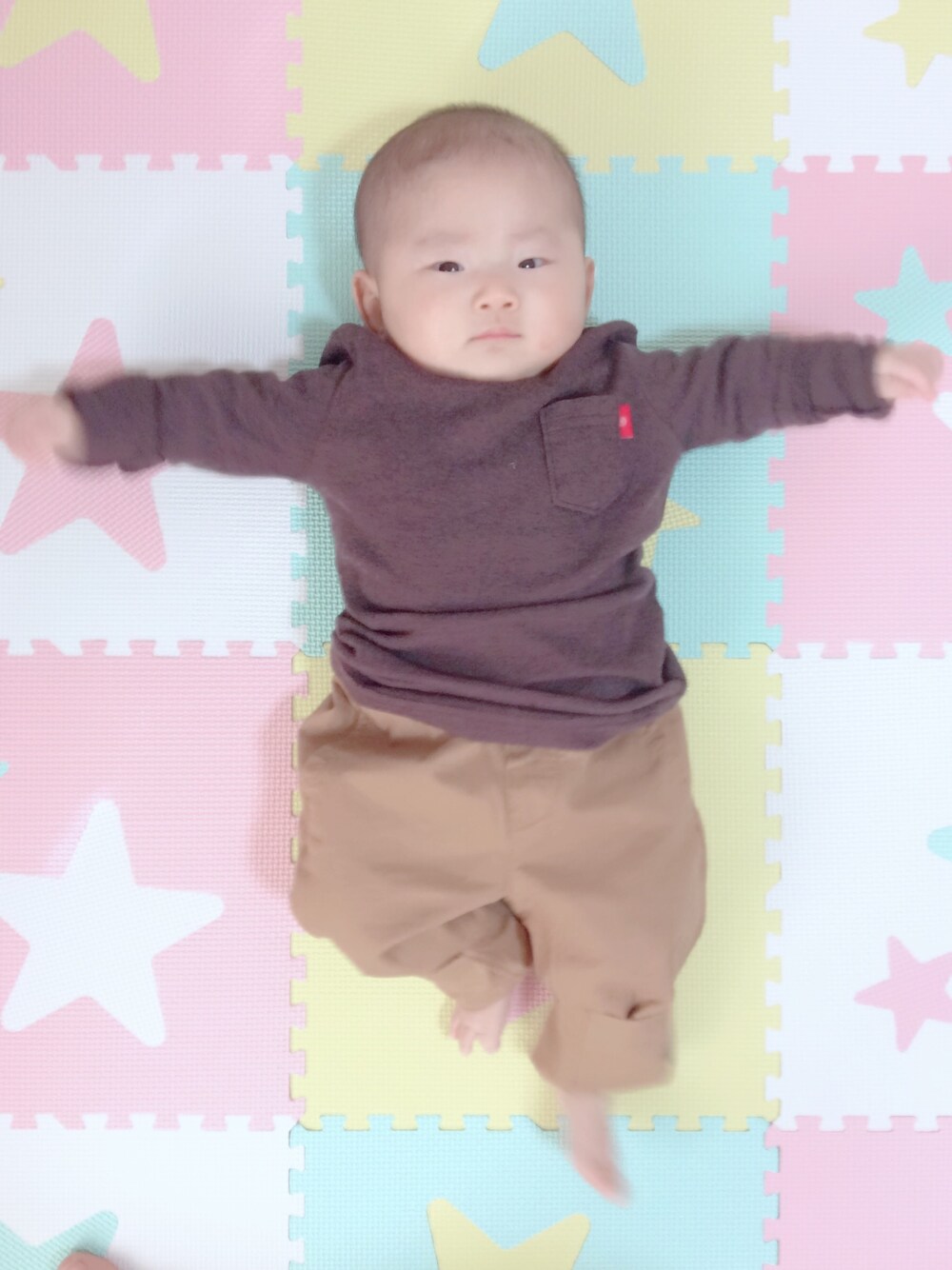 チノパンコーデ🎶 デニムのジャケット羽織ってお友達babyにあいにいきます💓 ジャケット羽織って写真は撮らせてくれませんでした。笑