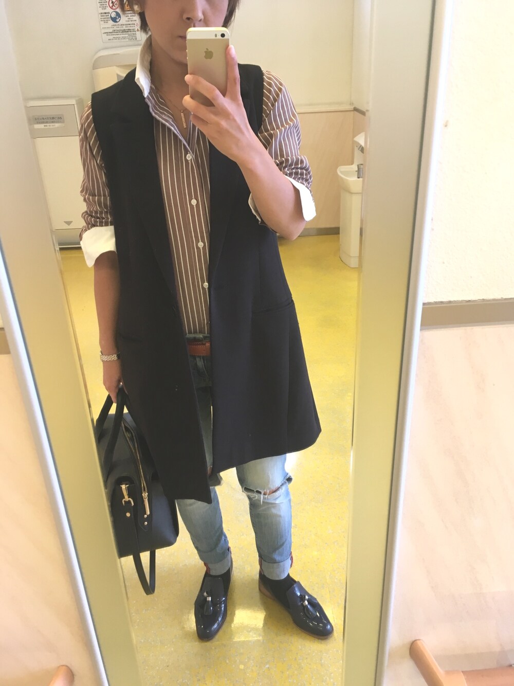 こんにちは😃 今日は久しぶりのコーデ投稿✨ ついこの間のは とりあえず載せた感が 否めなかったので、 今回はマジメに撮りました😁📷 ホントは、 最近買ったばかりの服で アップしたかったけれど、 買った服はかなり ナチュラル系だから、 今日はちょっと遠出の お出かけで 少しきちんとした格好しなきゃ いけないので 手持ちのお洋服で まとめてみました😊🎃 最近ちょっと 新しく出来たお友達の 影響で、ナチュラル系や カジュアルが多いんだけど、 今日は久しぶりの メンズライク👖👞✨ 仕事してた頃が懐かしい🤓 やっぱり着てみると メンズライク好きだなーって 思います。 ZARAのベストは ここ数年着てるけど、 これ着ると締まるし やっぱ買って良かった! ブラウン✖︎水色合わせは 何でやっても やっぱ良いなぁ🐶 今日は「やっぱ」連発でした😛