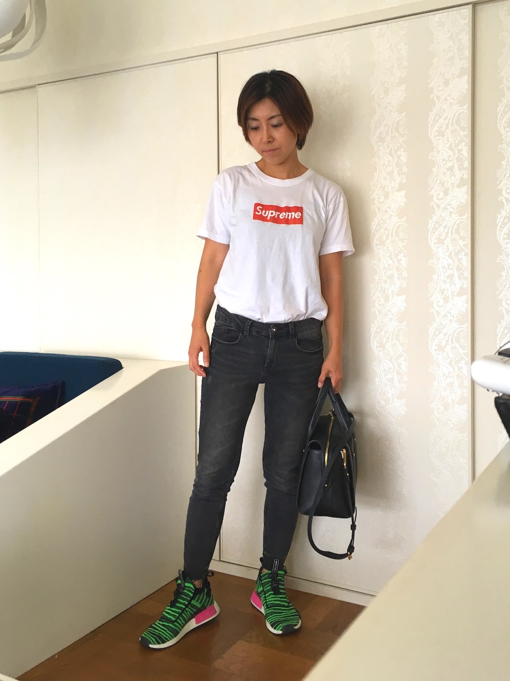 皆さんこんばんわ! 今日はなんだか蒸し暑い😱 どんどん夏がやってきてる 気配ですね🌞 ワタシの方は、 ひと月ほど前から ダイエットの為、とても久しぶりに筋トレと食事の見直しを してるんですが、 体重計ったダイエット初日に 近づいてきているという、 悲しい近況です😢 むしろ、筋トレのやり方が マズいんだと思うのですが、 太もも太くなってるし! そんなこんなで スポーティーにいきたくて 今日はこんな感じになりました✨ 最近ワイドパンツとか 流行ってるので、 そんなのばかり履いてたら、 やっぱ余計に緊張感なくなって 足が太くなる😭 これはやはり 色々意識していかなくちゃ! 結局キレイな人って みんな努力してる。 だからワタシもこの努力は いつか結果に繋がると 思って、色々やり方 考えながら続けていきたいと 思います👾