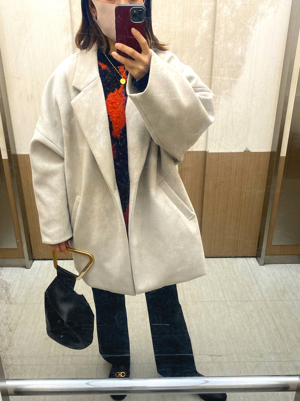 お店の名前ど忘れしたけど、 ずっと欲しくて再販待ってようやく買った ワンハンドルバッグ👜✨ . 久しぶりに持ってみたけど やっぱ好き💛 セーターは一目惚れした ZARAのメンズ🧡