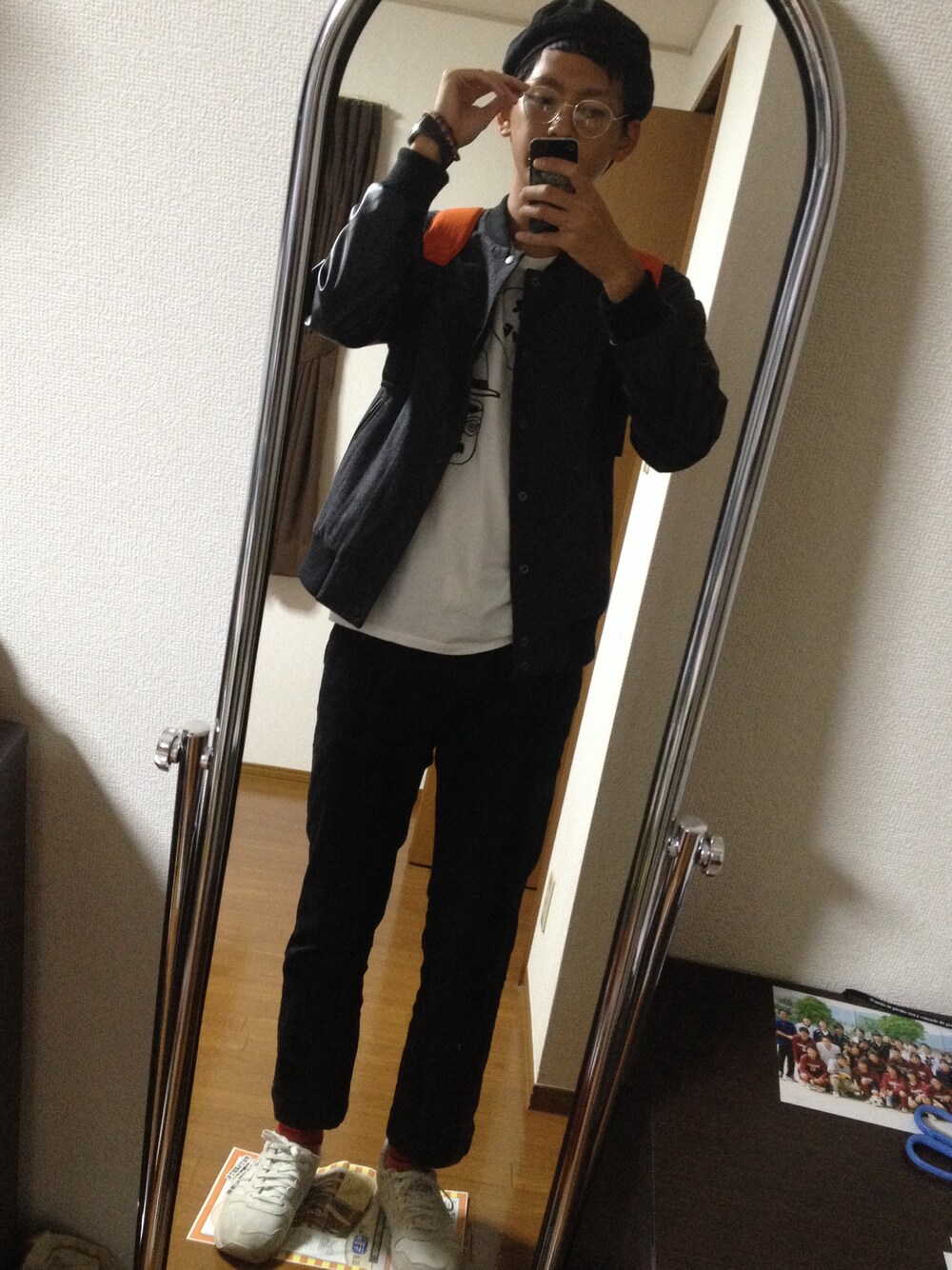 髪の毛伸びてきた…久々の更新! メガネといえばっていうポーズになったなぁ。 キャスケット帽…used スタジャン…HARE flowerfrower LIVE tee リング…used