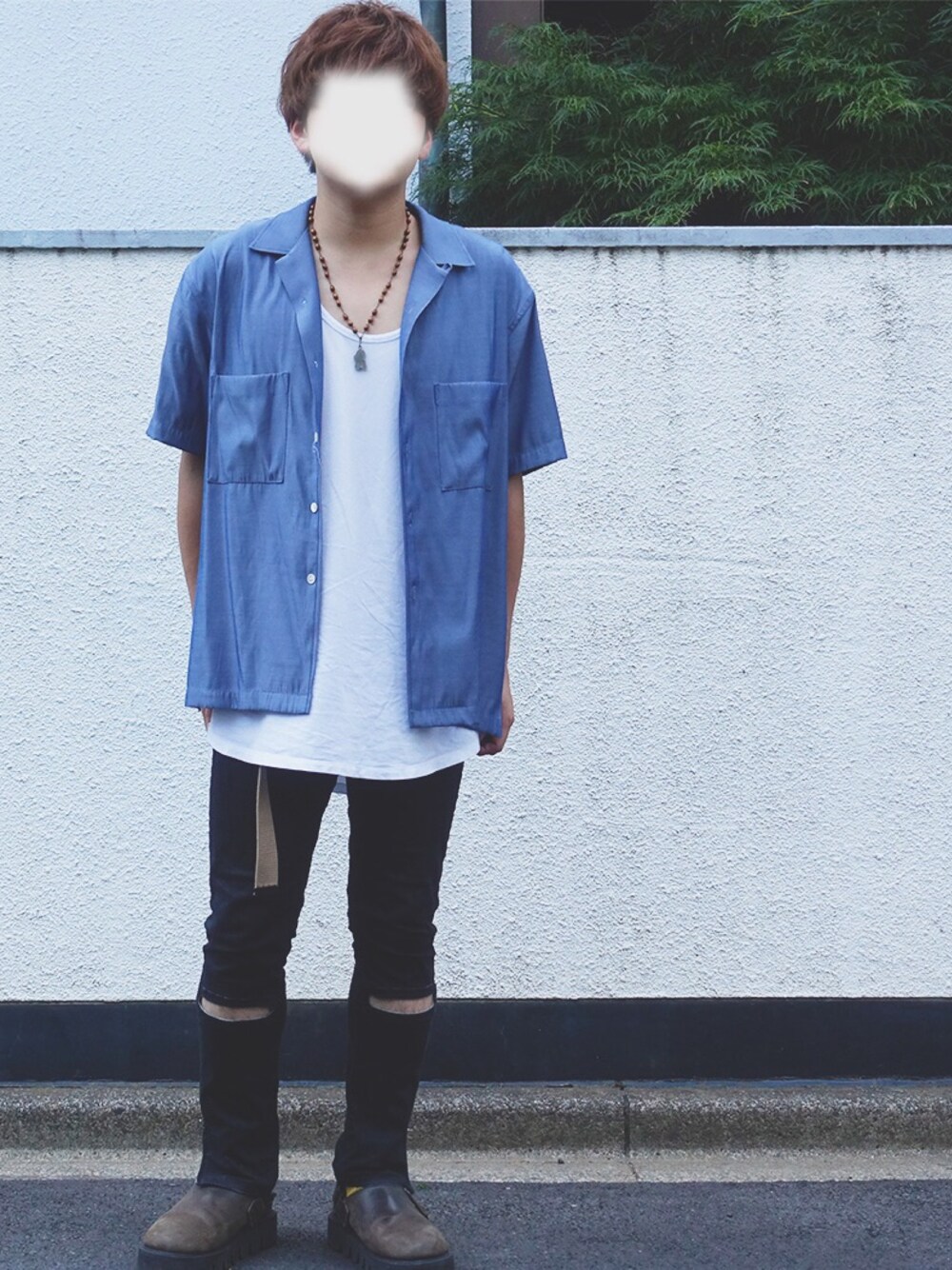 たまにはスキニーも、 スキニーにはオーバーサイズのトップスを合わせるのが好き、、 elephantblancのシャツはワークシャツながら光沢感がある生地なので、 品を感じれてヘビロテです! whowhatのスキニーはデザインが毎年一癖あってオススメです!