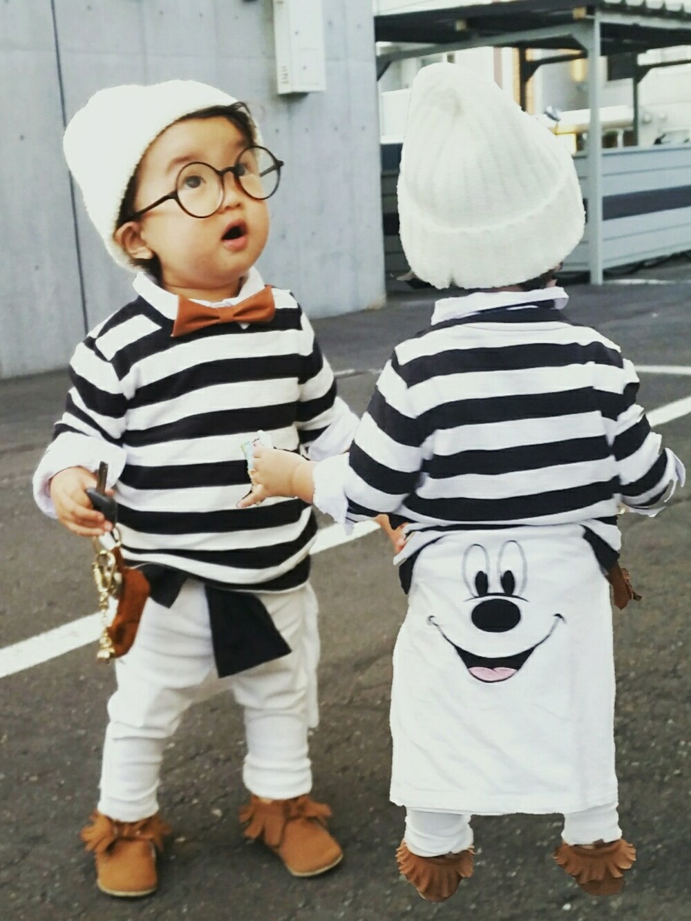 今日は、上下ユニクロ♡ 可愛すぎるミッキーさんのラグランロンTは 腰巻きで、後ろ姿を楽しむ感じに♡