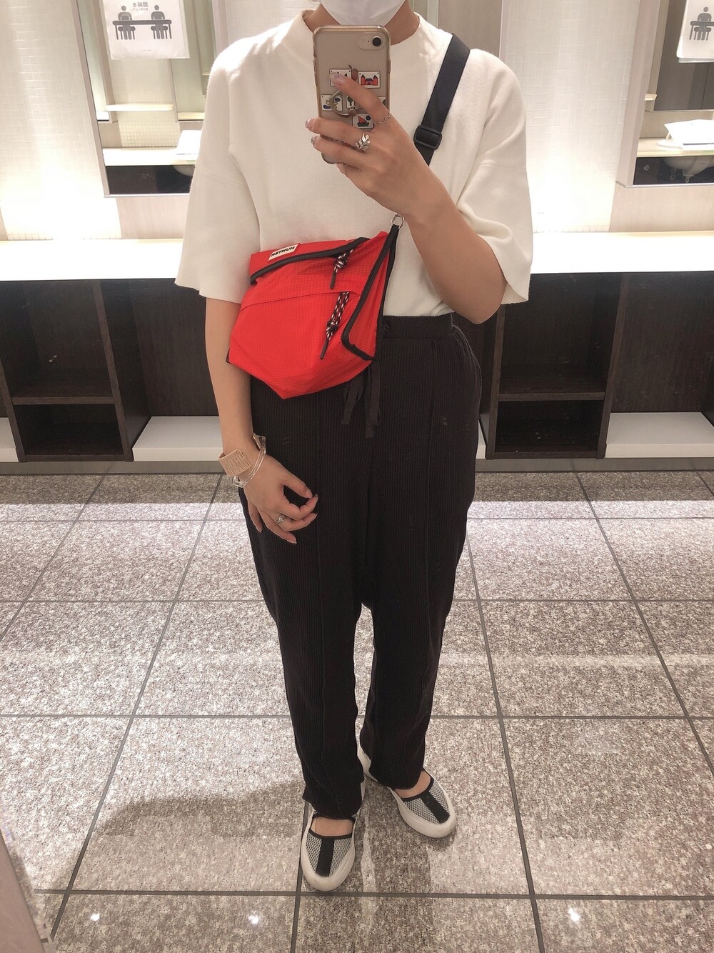 モノトーンに挿し色で、赤🍎 パンツはセールで2000円でした! インスタ:@__ityu3