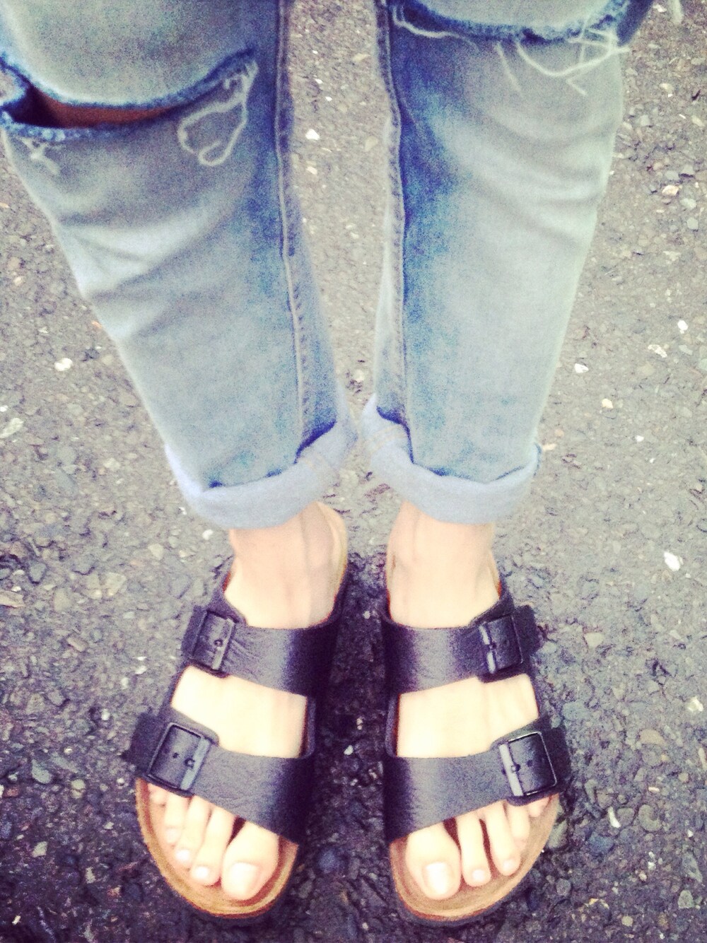 ブラック系のサンダルを着用したメンズの夏コーディネートの1枚目の写真