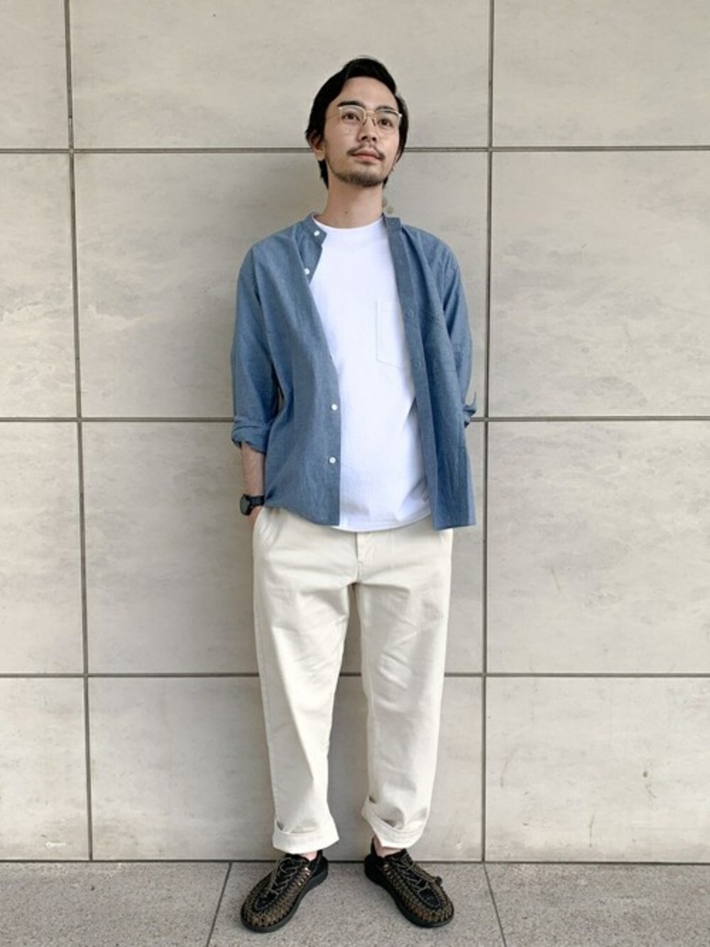 JOURNAL STANDARD relume(JOURNAL STANDARD relume 本社)のシャツ/ブラウス「【HOUSE HOLD / ハウスホールド】コットンリネン バンドカラーシャツ」を使ったコーディネート