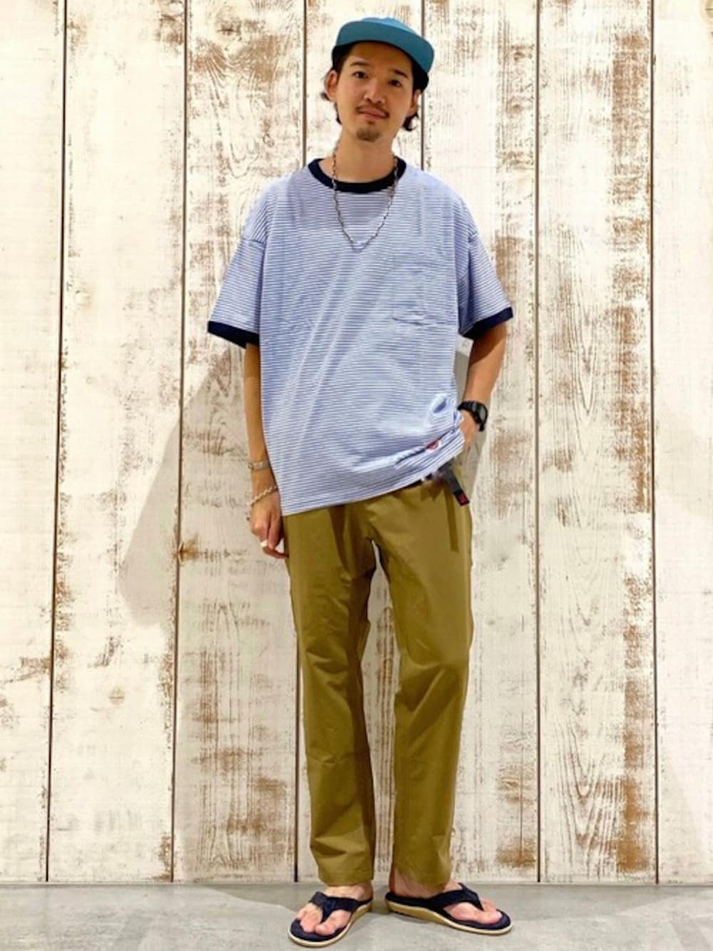 ブルーのアイテムでまとめたコーディネート。 夏らしい爽やかな雰囲気が出てます。 真似しやすいコーディネートです。 Tシャツ 普段のサイズ M、L 着用サイズ L ・relumeで、人気のボーダーアイテムです。レトロぽいデザインが人気です。 ・サイズ感は、ゆったり目になっておりLサイズでこのような余裕ある形に。ストリートぽくワンサイズあげても良いと思います。 パンツ 普段のサイズ M 着用サイズ M ・ストレッチ、形状回復となにかと便利な機能パンツグラミチです。 ・グラミチパンツは、入荷後、即完売が多いので狙ってる方は、お早めに!