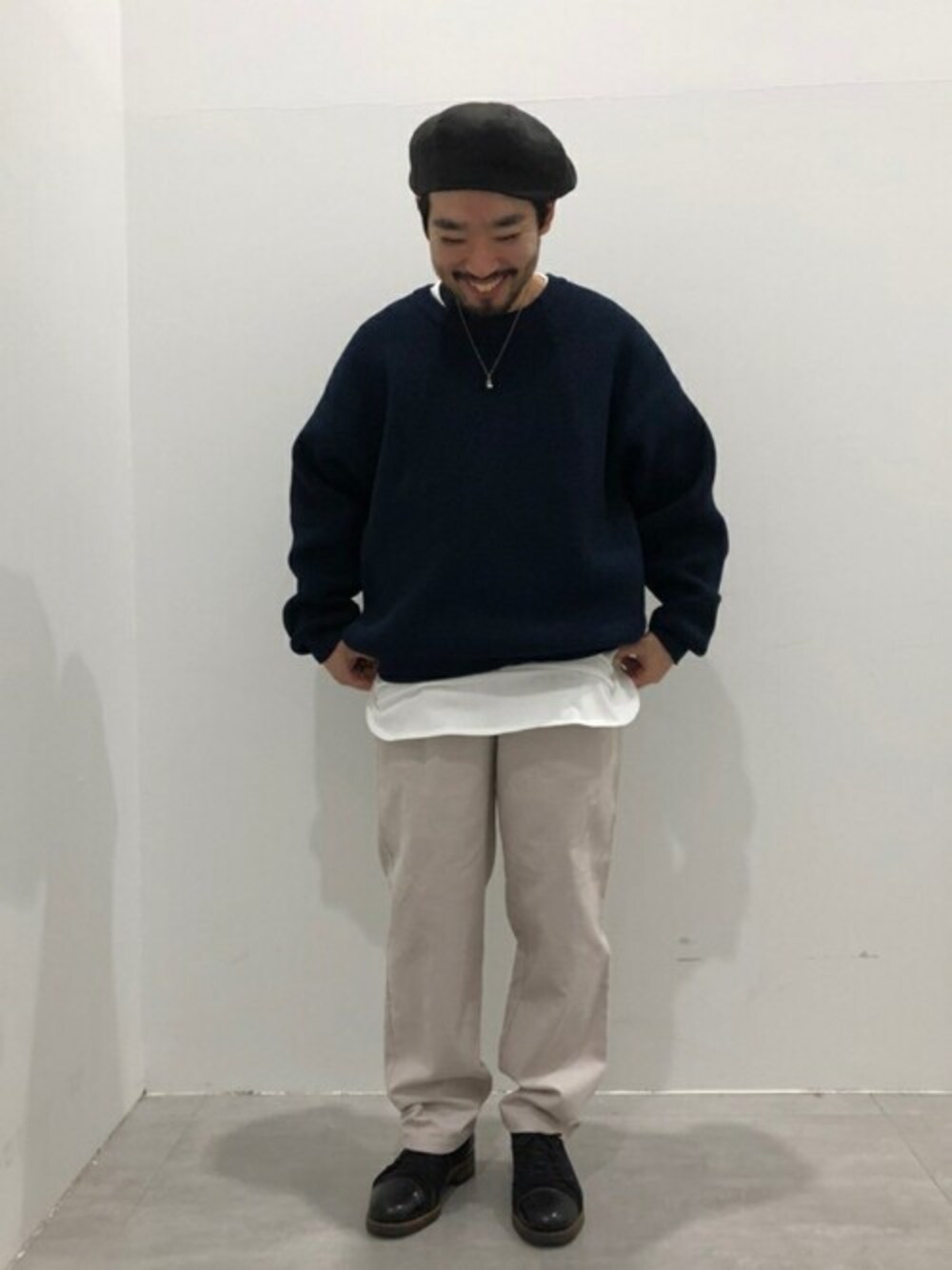 リサイクルポリエステル 2 IN SET ニット 普段のサイズ:S〜M 着用サイズ:M サイズ感:全体的にゆったりとしているが、着丈は長すぎず、合わせやすいサイズ感 着心地:伸縮性があり着やすい