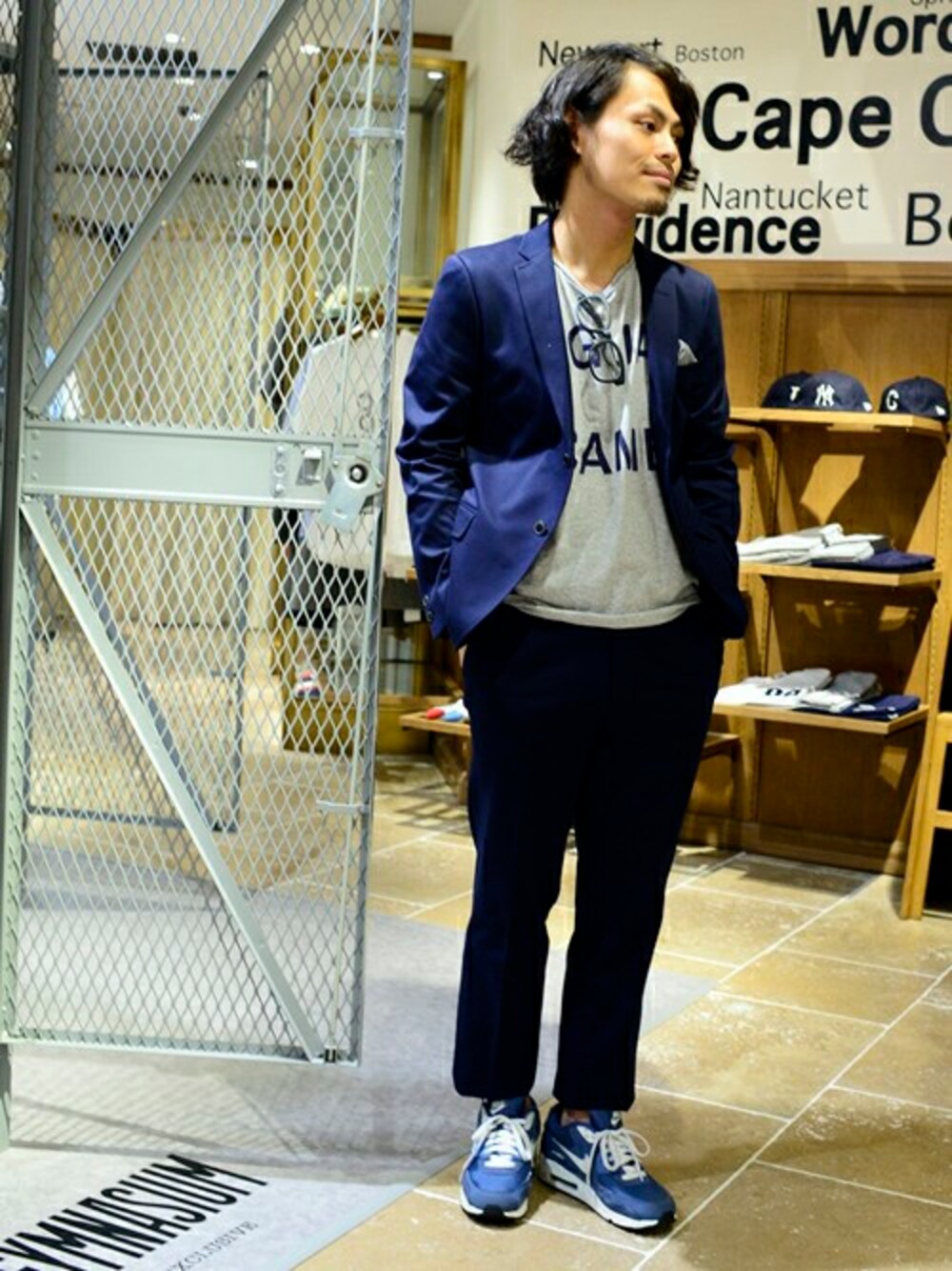 モックロディのジャケットとパンツのセットアップスタイル! Tシャツとスニーカーでカジュアルに!!