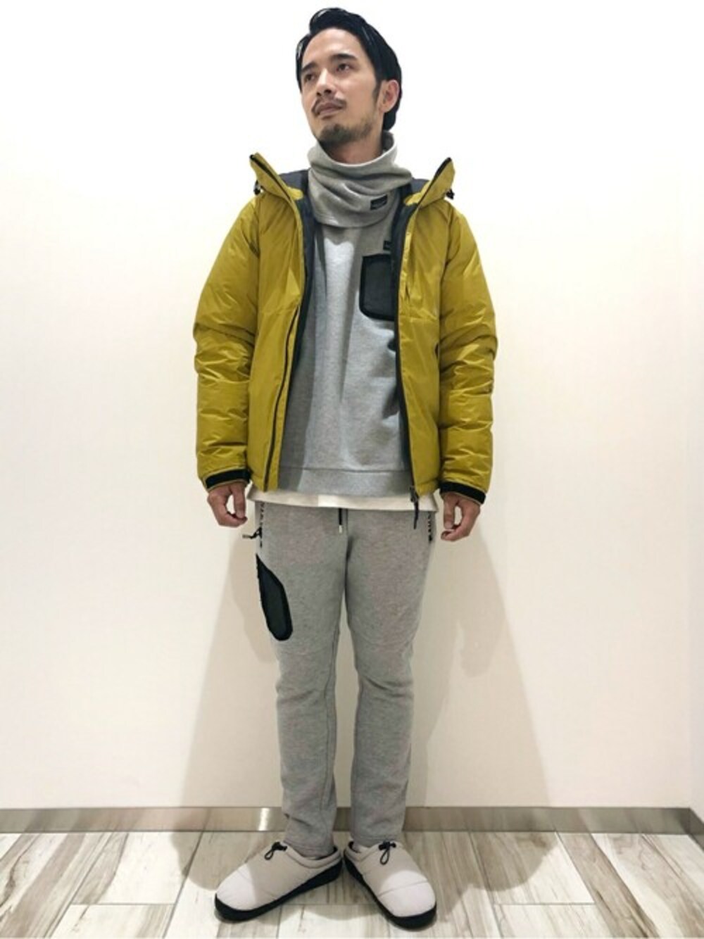 【SHIGADOWN by NANGA】別注 AURORA-TEX ダウンジャケット 新色もついに入荷しました。 今回はアウトドアテイストのセットアップでラフな着こなし。 身長:170cm/普段サイズ:M/着用サイズ:M サイズ感:インナーがスウェットでジャスト 素材感:ハリのある素材感でしっかりとしています。 着心地:内側にダウンパックがあってかなり暖かい。またマウンテンパーカーの様な表情で動きやすい。