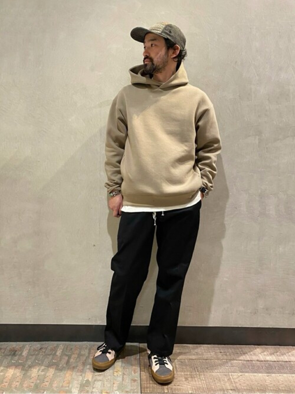 【ダンボールパーカー】 毎回入荷のたびにご好評を頂いております、ダンボールパーカーが再入荷してきております! こちら程よくゆったりめサイズなので、自分の体型でもLで程よいサイズ感です。 コーディネートはモノトーンをベースにベージュがを差し色で映えるように着用しました。 ストリートテイストのアイテムですが、生地感やカラーにより大人なカジュアルスタイルでの着こなしができます。 身長:171cm/体重:61kg/体型:中肉中背/普段サイズ:M/着用サイズ:L サイズ感: ややゆったりとしたオーバーサイズ。 素材感:少し光沢のある柔らかい素材で肌触りもとても良いです。 着心地: 生地が柔らかくゆとりがあるのでラクに着れます。