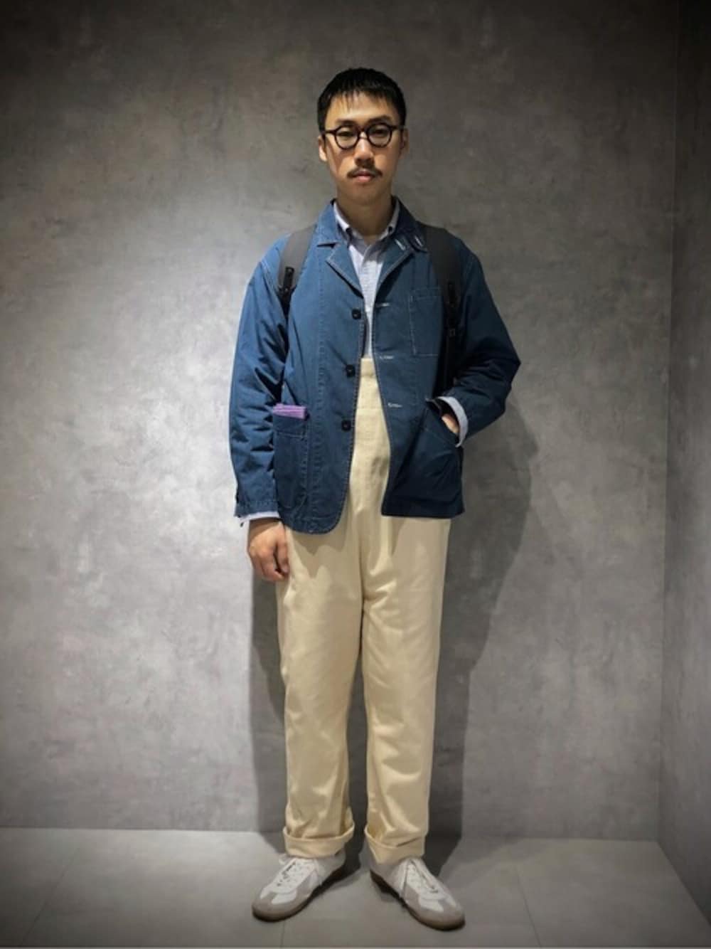 JOURNAL STANDARD relume(JOURNAL STANDARD relume 本社)のテーラードジャケット「インディゴナイロン ジャケット」を使ったコーディネート