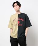 身長170cm 体重60kg 標準体型 普段サイズM〜L 30代半ば Tシャツ 着用サイズL ややゆるめ。肩幅、身幅広め パンツ 着用サイズ4 Lサイズ位。ややゆるめ。丈短くテーパード 古着のカレッジTシャツをリメイクしたようなデザイン。シンプルな合わせになりやすいこの季節に1枚でインパクトあるのでおすすめです。女性の方にもおすすめです。