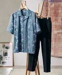JOURNAL STANDARD relume(JOURNAL STANDARD relume 本社)のシャツ/ブラウス「【WEB限定 柄シャツ+スラックス セットアップ】RETRO PATTERN セット [ワンマイルウェア/オーバーサイズ/オープンカラーシャツ/黒スラックス/ストライプシャツ/総柄シャツ][ユニセックス対応]」を使ったコーディネート