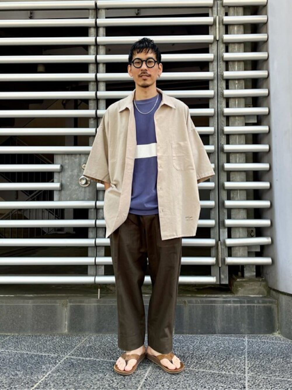 身長171cm 体重58kg 普段着用サイズ:M ●着こなしポイント オーバーサイズのシャツをメインにコーディネートしました。かなり大きいサイズ感ですが羽織り物としてとても着やすいです! 今回はフルレングスパンツで合わせてますがショーツと合わせていただいてもかっこいいと思います! 今から夏の暑い時期まで重宝するアイテムとなっております! シャツ 【ARMY TWILL C/L BIG SH S/S】 着用サイズ:M サイズ感:かなりのオーバーサイズ 素材感:麻混のサラッとした素材 着心地:ゆとりがあり、軽いので楽に着られる。 カットソー 【ARMY TWILL PRINT BORDER 】 着用サイズ:M サイズ感:身幅にゆとりがあります。 素材感:綿素材ですが柔らかいです。 着心地:ゆとりがあり、柔らかいので快適に着れます。 パンツ 【HH/FLANDERSLINEN BAKER PT】 着用サイズ:4 サイズ感:サイズアップでゆとりがあります。 素材感:綿、麻混素材 着心地:とても着やすいです。夏場にも活躍するパンツです。