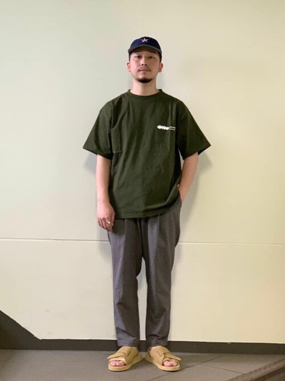 近年話題を呼んでいるムーンスターから発売されたコスパ最強のシューズライン810's。 絶大な人気を誇る810'sとrelumeがタッグを組んで制作したTシャツがこちら。 なんともキャッチーなロゴに落ち着いたカラー、さらに防菌防臭加工も施され日本のジメジメした夏場にはもってこい!! relume別注カラーのサンダルに合わせるとカジュアル過ぎない大人の雰囲気が◎ 身長:169cm/普段サイズ:L ・トップス 着用サイズ:M サイズ感:肩落ちシルエットの程よいゆとり。 ・パンツ 着用サイズ:M サイズ感:お尻太もも周りはゆとりがあり、綺麗なテーパードシルエット。