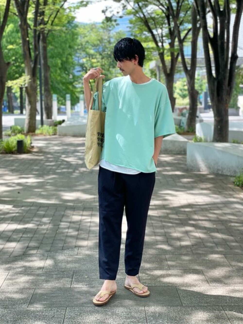 ''春夏のレイヤードスタイルの勧め◎''Style Sample.. relumeで大好評の”CALIFORNIA”プルオーバー スウェットのライトな生地感で登場◎ 程よいウェイトの生地感は、幅広くシーズンを問わず使える優れもの。 裏地は肌触りの良い裏毛ですのでインナーに半袖のTシャツやタンクトップで合わせても気持ちよく着用頂けます。 ポイントは裾のカットオフとスリット。表情のあるデザインは、鮮やかなカラーリングと相まって軽く動きの出るシルエットを作ってくれます。 パンツは夏のマストバイなオススメのこちら◎ ドライな着心地でさらりと快適なシアサッカー素材のパンツです。 縦横にストレッチも効いているので足運びばしやすい上に、着心地は抜群。 フルレングスシルエットですが凹凸があり、肌に当たる面積を少なくしているシアサッカー素材はより快適さを倍増させています。 また、イージーケア素材を使用しており、ご家庭での洗濯も可能でシワになりにくい素材です。 シルエットは春夏には嬉しいゆったりなリラックスフィットなサイズ感。 コーディネートによってはきれいめからカジュアルまでメンズのスタイリングは網羅出来る優秀アイテムです◎ 【実際に着用して感じたオススメポイント】 ◉計算されたオーバーサイズながら丈感も長過ぎず、使いやすい◎ ◉ユニセックス対応として女性の方は勿論、今時期から春先の本命アイテムとして、カップル&ご夫婦兼用で使用も◎ 身長: 182cm / 72kg 普段のサイズ: L〜XL 着用サイズ: TEE→L INNER→L PANTS→ L SHOES→L