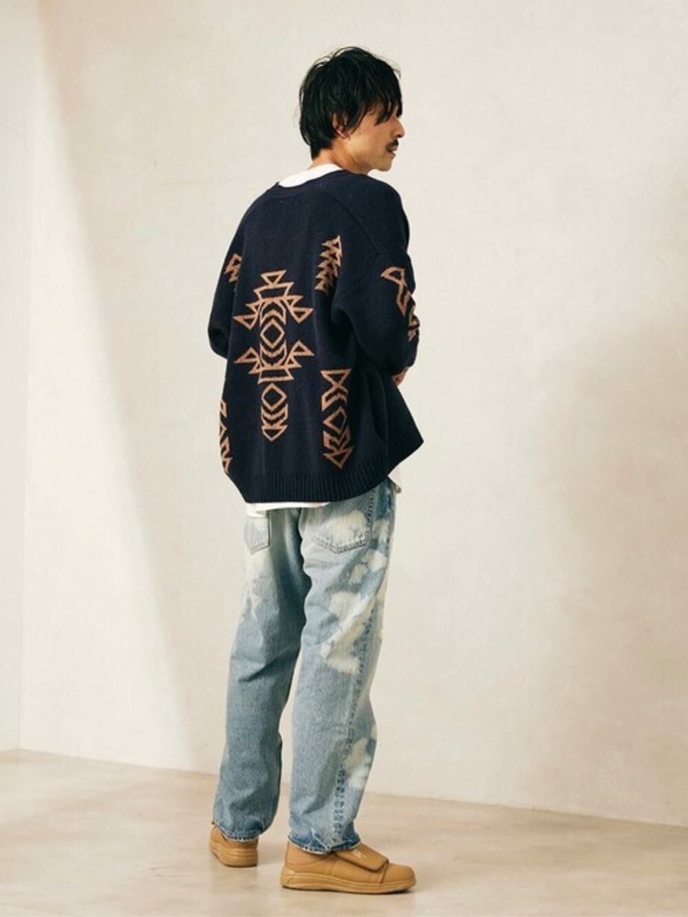 ''即完売必須◎別注ペンドルトン'' 特徴的なデザインが雰囲気を醸し出す”PENDLETON"のニットカーディガン。 自身も今回の撮影時に非常に気に入って着用させて頂いた商品です◎ 自分の身長でもしっかりオーバーサイズ+袖から肘にかけたボリュームスリーブが絶妙でインナー使いから軽アウター使いとしても幅広い世代とシーズンをカバー出来ます◎ メンズのみならず是非レディースの方にも抜群にオススメです◎ シーズン前には間違い無く完売必須な注目アイテムな為、是非お早めに◎ 秋冬のシーズンムードを上げてくれるネイティブアメリカンの代表的な柄を使用しボディのカラーごとにその柄のデザインも変えているところがポイントです。 サイズ感も雰囲気のあるゆったりめシルエットで、白Tの上から羽織ればスタイリングの主役になるアイテムです。 アウターがどんどん薄手になっている昨今、軽羽織りとして今年持っていて間違いないニットアイテムです。 【PENDLETON / ペンドルトン】 1863 年にイギリス人の毛織物職人であったトーマス・ケイ(Thomas Kay )が米国オレゴン州に移住し、当初はネイティブ・アメリカン柄のブランケット製造を手掛けたことから始まりました。 【実際に着用して感じたオススメポイント】 ◉計算されたオーバーサイズながら丈感も長過ぎず、使いやすい◎ ◉ユニセックス対応として女性の方は勿論、秋冬本命アイテムとして、カップル&ご夫婦兼用で使用も◎ 身長: 182cm / 72kg 普段のサイズ: L〜XL 着用サイズ: KNIT→L TEE→L PANTS⇨ L