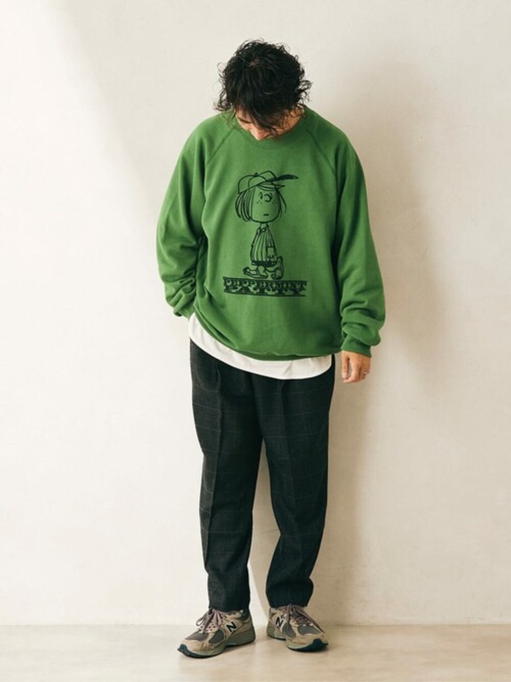 色もプリントもコーディネートのアクセントに 年齢:30代 身長:174cm 体型:標準型 ▼アイテム別紹介 SWEAT 【PEANUTS×SPORTS WEAR by relume】 SPECIAL スウェット ¥10,780税込 着用サイズ:XL サイズ感:ゆったり着れるオーバーサイズなシルエット。 素材感:柔らかい裏起毛のスウェットで1枚でも冬場のアウターのインナーにも◎ コメント:チャーミングなキャラクタープリントと風合いのあるセリフを記したバックプリントがポイント。 ーーーーーーーーーーーーーーーーーーーーーーーーーーーーーーーーーーーー PANTS WASHABLE ウールスラックス ¥11,000税込 着用サイズ:L サイズ感:腰から膝辺りまでゆったり履けるテーパードシルエット。1タックとセンタークリースもあり、履き心地は楽なのにキレイに見えるイージースラックス。 素材感:厚すぎないウール地で柔らかくチクチク感もなく滑らか。 コメント:探すとなかなか無い、洗えてキレイに見えるウールパンツ。 ▼一言コメント 発色がいいスウェットにキレイなスラックスが大人も着れるスウェットコーデ。