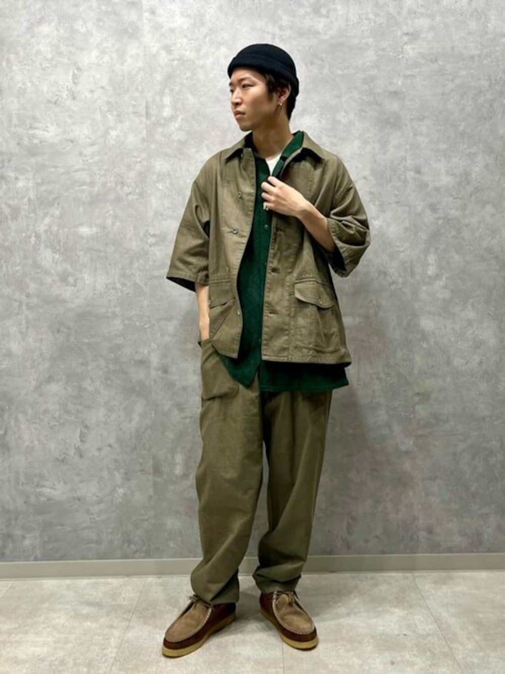 年齢:20代後半 身長:170cm 体型:やせ型 ▼アイテム別紹介 【ARMY TWILL / アーミーツイル】別注 Denim ユーティリティーシャツ 着用サイズ:L サイズ感:身幅、袖口にもゆとりがあって風が通りやすいサイズ感です。 素材感:さらっとした素材感です。 着心地:暖かい時期のオシャレアイテムとして快適に着用することができます。 【ARMY TWILL / アーミーツイル】別注 4PK デニムパンツ 着用サイズ:L サイズ感:お尻と太もも辺りはゆったりとして着やすいサイズ感です。 素材感:さらっとした素材感です。 着心地:暖かい時期でもストレスなく履くことができます。