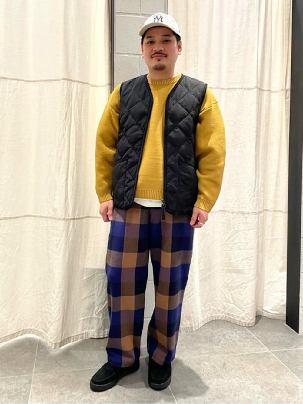 【TAION × HOUSE HOLD / タイオン】別注 ダウンベスト」 毎シーズン人気のタイオンとの別注アイテム! ベストは今回初めて採用されたデザインです。 800フィルパワーの高品質ダウンを使用しながら、この価格でご提供できるブランドは他ではなかなかありません! 冬はバランス良くレイヤードして楽しむ季節なのでベストは個人的に便利で良く使いまわしてます! ベストの着回し例としてイエローのカラーニットやチェックパンツを合わせました。 一見派手すぎかなと思う組み合わせもこのようにベストが入るだけで印象違いますよね! 普段カラー物を着てみたいけどなかなかトライできない方、是非参考にしてみて下さい! 身長:169cm/体格:がっちり/普段サイズ:L/着用サイズ:4 サイズ感:ゆったり 素材感:ハリのあるポリエステル生地を使用し、マットな質感 着心地:ビッグシルエットなので、一枚着で楽しめる