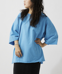 鮮やかなブルーのスウェットTシャツ。 年齢:30代 身長:157cm ▼一言コメント 毎回人気のスウェットTシャツから、鮮やかなブルーが登場したので着てみました! 色味がきれいなので他はモノトーンにまとめ、トップスはタイトめのスカートで合わせました◎ スウェット地ですが、夏場でも着られる軽い素材になっています。 ********************* ▼アイテム別紹介 CALIFORNIA ライト半袖スウェットTEE ¥4,950税込 サイズ感:オーバーサイズです。 素材感:スウェット素材で柔らかいです。 *********************