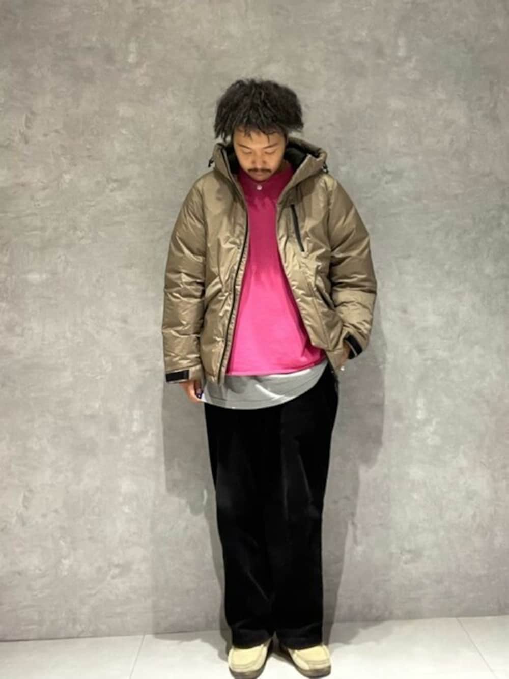 〜TOPS〜 『NANGA』との別注ダウンがデザインをアップデートして今年も登場! デザインベースはNANGAの定番AURORA DOWN JACKET! 表地に透湿性、保温性、撥水性に特化した多孔質ポリウレタン防水コーティング素材「AURORA-TEX(R)(オーロラテックス)」を採用してます! 今シーズンは今までのスタイリッシュな印象からrelumeが得意とするアメリカンアウトドアなイメージを加えた別注になっています! 前回あった切り替えを無くし、よりカジュアルな印象に仕上げております。 腰ポケはフラップ付きのファスナーポケットを採用し、さらに比翼の前立てを付けて保温力をアップ。 また袖口のベルトにはNANGAのゴムタブを付け使いやすさにもこだわっており、全体的な機能性を上げております! 止水ファスナーと表地でスペックも充分、軽さと保温力で、使い易さも抜群です!!! ※こちらの商品は700FP (フィルパワー)になります。 ※ダウンの羽毛量は170gになります。 --------------------- 〜BOTTOMS〜 しっかりとした生地感の8ウェルのコットンコーデュロイ素材を使用! 畝が立つように凹の部分に糸を2本通して凹凸がくっきりするように作製したレリュームオリジナル生地です。 23SSにご好評いただいたAMERICAN チノワイドスラックスをベースにした、ツータック仕様で腰周りがゆったりとしたセミワイドシルエット! より穿きやすくなるようにレッグラインを細めにアップデートしました! フロントファスナーには、1936年にニューヨークで創業した老舗のファスナーメーカーの"IDEALファスナー"を採用し、ボタンは雰囲気のあるマーブルボタンを使うなど細部にまでこだわりました。 --------------------- 身長:174センチ//普段サイズ:L-XL TOPS 着用サイズ:L サイズ感:ゆったり目 着てみた感想:非常に軽いので、自分みたいにスウェット系は勿論、ニット系やシャツ系と合わせてもストレスフリーで着ていただけます!とにかく着心地が良いです!! BOTTOMS 着用サイズ:M サイズ感:ゆったり目 着てみた感想: 穿きやすくシルエットがカッコいいです!光沢感があるのですごく高見えします!