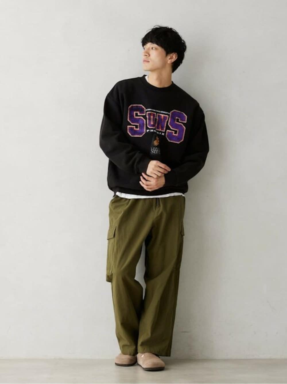 身長:176cm 体型:標準型 普段着用サイズ:L 年齢:30代 「OFF THE COURT by NBA」がJOURNALSTANDARD・JOURNALSTANDARD relumeとの別注スウェットが好評につき追加生産決定! NBAのスウェットをワイドパンツと合わせてゆるっと着こなしました。 裾からインナーをさりげなく見せることでこなれ感を演出できます。 《スウェット》 着用サイズ:L 着用サイズ感:ゆったりとしたサイズ感です。 《パンツ》 着用サイズ:L 着用サイズ感:ゆとりのあるワイドシルエットです。