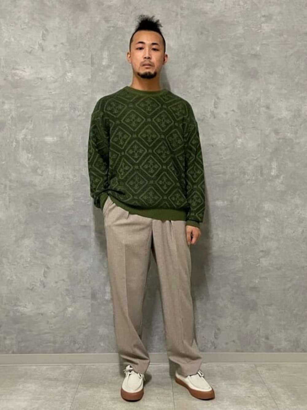 20代 172cm 標準体型 ニット Mサイズ 柔らかい素材で肌触りが気持ちよく、想像していたよりずっと軽く何度も着たくなるようなニットになっています。 柄がとても大きく、これ1枚で着用して頂いても可愛く着ていただけると思います。 パンツ Mサイズ タック素材で太ももにゆとりがあります。 柔らかな風合いの素材感なので履いていて着心地の良いパンツです。 オフィスやデートどんな場面にも使えるデザインです。