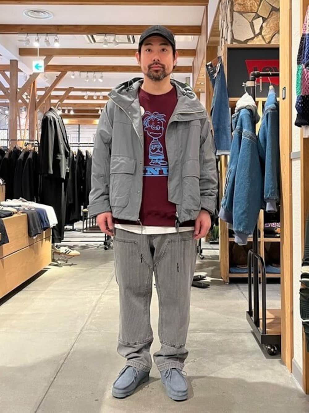 身長:168 体重:79 がっちりしてます 普段サイズ:L〜XL 着用サイズ:ピーナッツSWT /Lサイズ,シェラデザイン/Mサイズ,ヒッコリーストライプデニム/Mサイズ,クラークス/UK080 着用感:ややゆったり 素材感:ナイロン素材 着心地:軽い着心地 一言コメント: SIERRA DESIGNS × JOURNAL STANDARD relume‼︎‼︎ 【SIERRA DESIGNS】と一緒に作り上げた、relumeでしか手に入らない24SS完全別注アイテム‼︎‼︎ パンツにアクセントでヒッコリーストライプデニム‼︎デニム素材とナイロン合わせの素材違いでメリハリをつけて、グレー×ブルーのカラー合わせでバランスをとりました‼︎ 是非店頭でご覧下さい‼︎