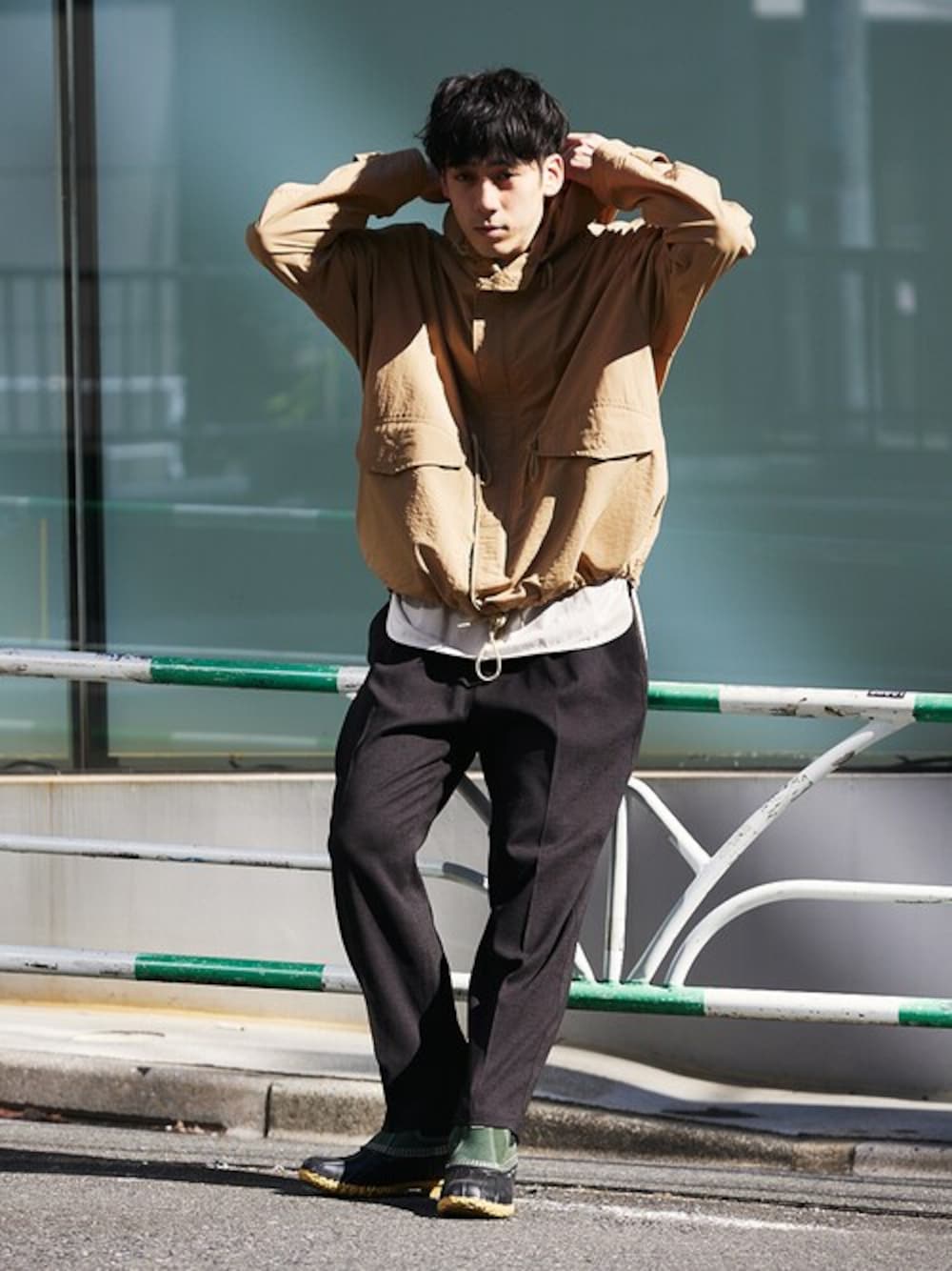 身長:179cm 体型:標準型 普段着用サイズ:L 年齢:20代 アメリカミリタリーコートとフランス軍スモックプルパーカーをベースにモダナイズしたミリタリーパーカー。 キレイなドレープ感が入ることでどこかドレッシーな印象になるので、タウンユースにも最適です。 テーパードパンツはもちろんカーゴパンツやデニムなどボトムを選ばず着用できます。 《ミリタリーパーカー》 着用サイズ:L 着用サイズ感:ゆとりがあるビッグシルエットのサイズ感です。 《Tシャツ》 着用サイズ:L 着用サイズ感: レイヤードしやすいようやや長めのサイズ感です。