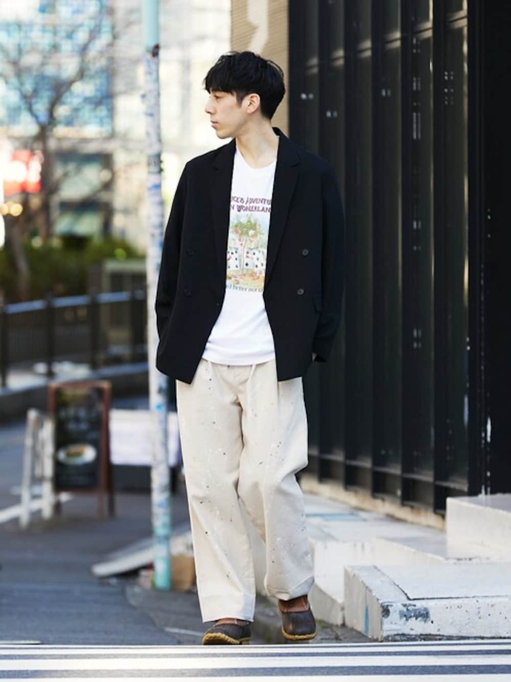 身長:179cm 体型:標準型 普段着用サイズ:L 年齢:20代 relumeから新作の365gのヘビーオンスなデニムが登場! ワイドなデニムパンツをジャケットと合わせてキレイめに着こなしました。 ペンキがついたデニムにプリントTときれいめながら遊んでみました。 《ジャケット》 着用サイズ:L 着用サイズ感:ややゆったりとしたサイズ感です。 《デニムパンツ》 着用サイズ:L 着用サイズ感:腰周りにはゆとりがあって快適なサイズ感です。