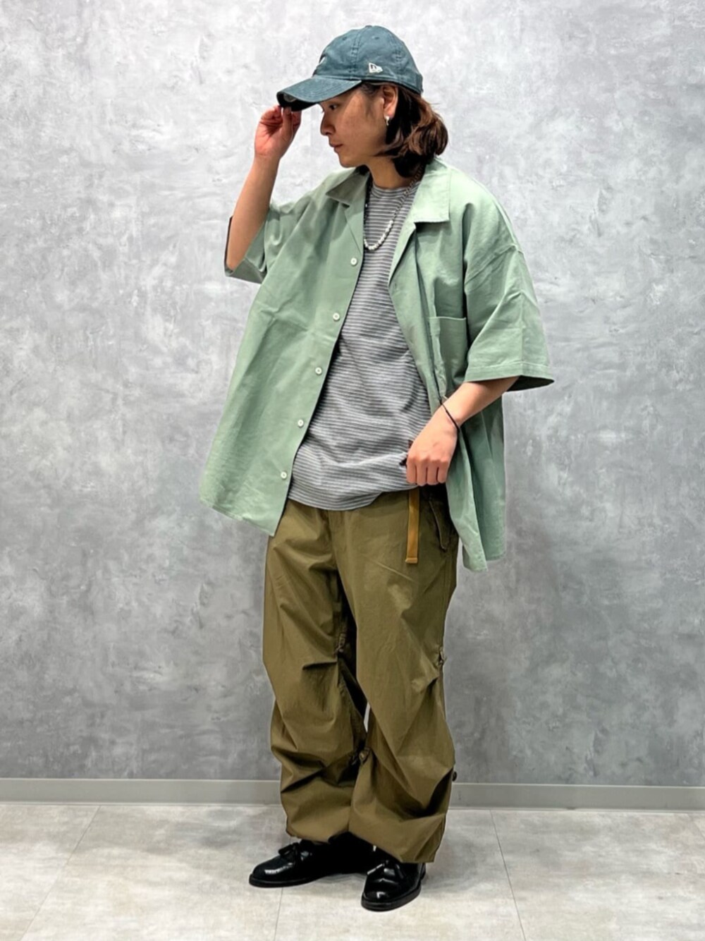 【ARMY TWILL relume C/L SLA⠀】 サイズ感 : ゆとりあり 素材感 : サラッと羽織れる素材 着心地 : 夏場大活躍間違い無しのアイテム 【NATION WIDE ボーダーTシャツ】 サイズ感 : ゆとりあり 素材感 : 厚すぎず 夏にピッタリな生地感 着心地 : 軽く肌触りもとても良い 【GRANTEX パラシュートパンツ】 サイズ感 : ゆとりあり 素材感 : 薄地のコットン素材 着心地 : 軽く夏でも着用可能な生地感
