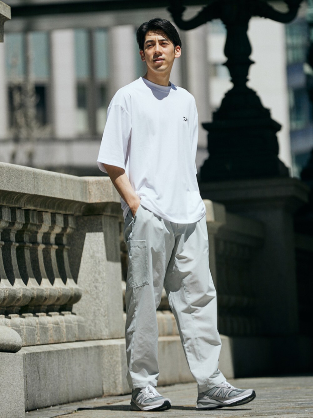 身長:179cm 体型:標準型 普段着用サイズ:L 年齢:20代 【DAIWA × JOURNAL STANDARD relume】24SS special items ロゴTシャツ。 ホワイト×グレーの淡色で纏めて、夏らしい清涼感を意識しました。 ボトムもDAIWA別注のカーゴパンツでアクティブに動き回る日におすすめのスタイリングです。 《Tシャツ》 着用サイズ:L 着用サイズ感:ゆったりめのオーバーサイズシルエットです。 《パンツ》 着用サイズ:L 着用サイズ感:太ももあたりはゆったりで裾にかけてすっきりしてます。