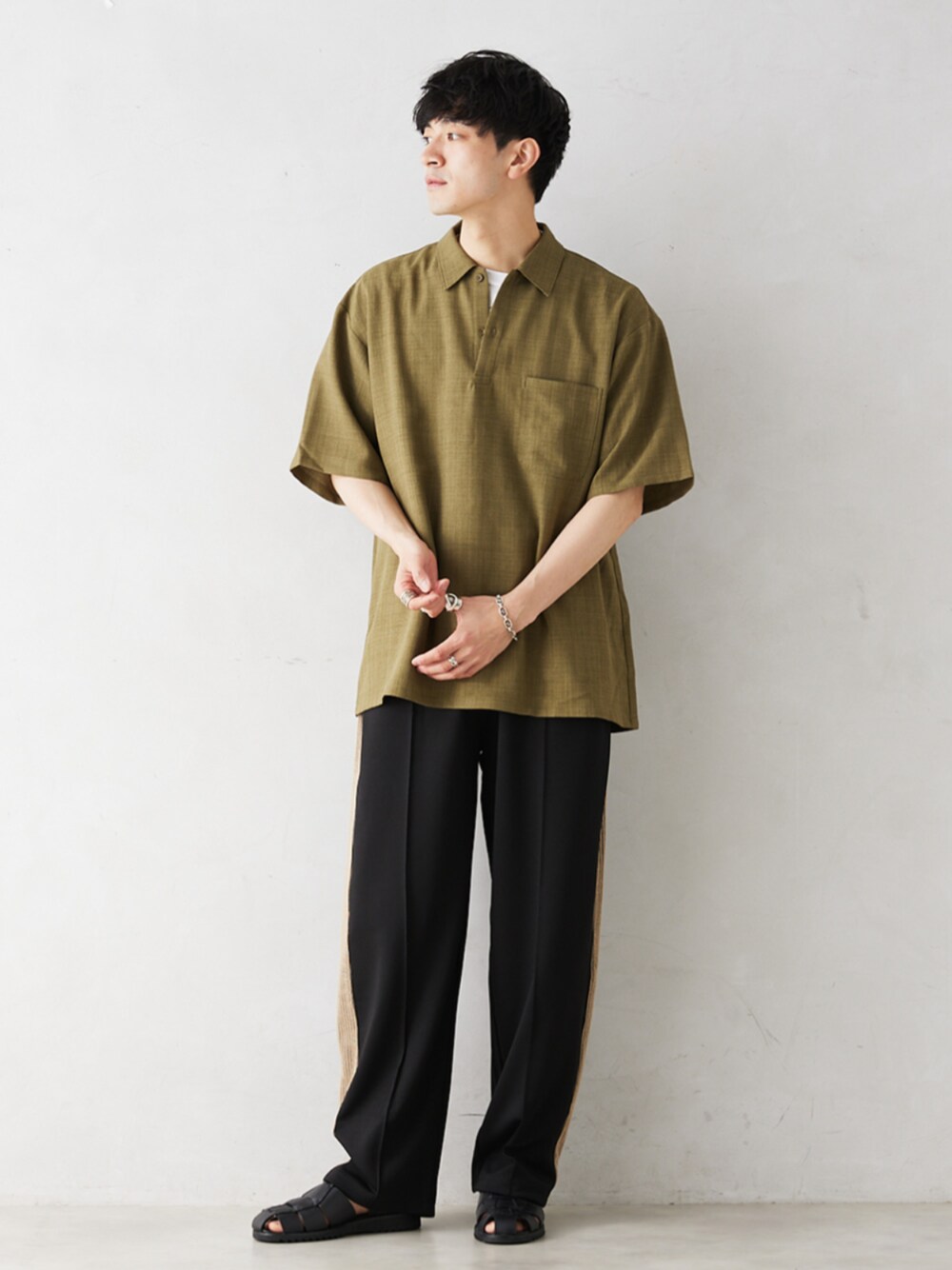 身長:176cm 体型:標準型 普段着用サイズ:L 年齢:30代 きれいめ、カジュアルどちらのスタイルでも使うことができるオーバーサイズのポロシャツが登場! 今回はトラックパンツと合わせてスポーティーに着こなしました。 パンツのサイドラインとシャツの色をリンクさせ、統一感を出しました。 《ポロシャツ》 着用サイズ:L 着用サイズ感:ゆとりのあるサイズ感です。 《トラックパンツ》 着用サイズ:L 着用サイズ感:全体的にゆったりとしているサイズ感です。