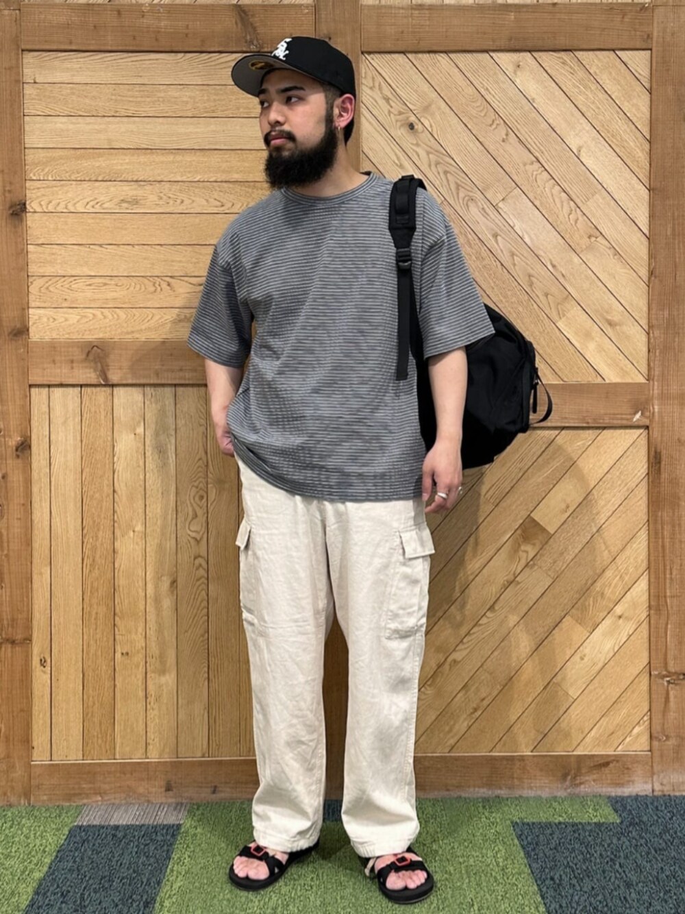 TEVAのサンダルに合わせた軽快なスタイル。 大きなリュックは安心感とクラシックさを兼ね備えた別注アイテムです💁♂️ トップス着用サイズ M ボトムス着用サイズ M