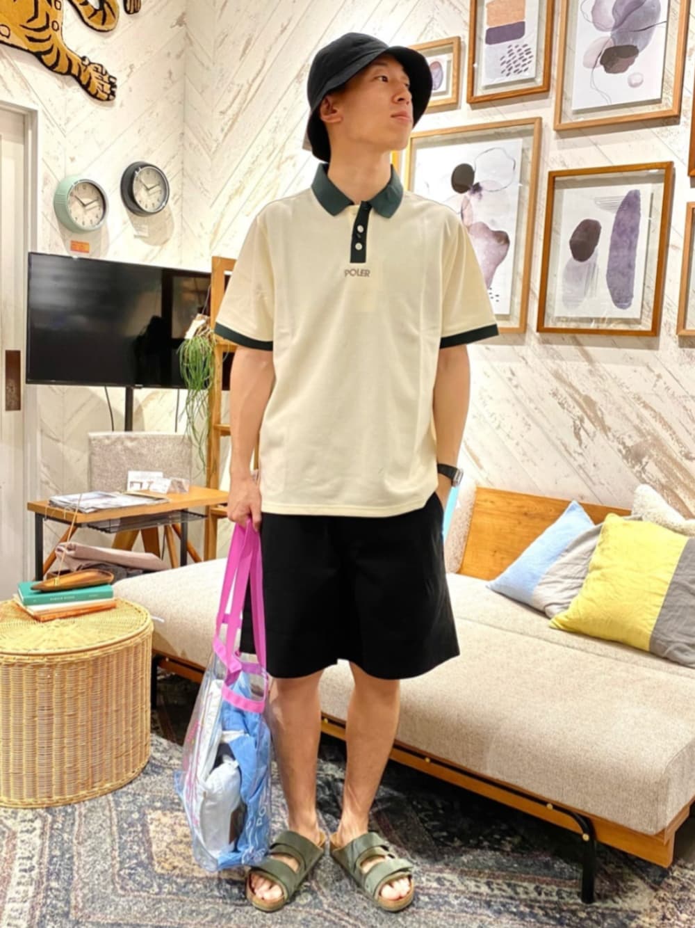 年齢:20代 身長:173cm 体型:標準 普段サイズ:L ▼一言コメント 5/31 発売!別注POLERシリーズ!🏔️ プールバッグの中にはEMBワークシャツとLevi'sホワイトデニム入れてます!