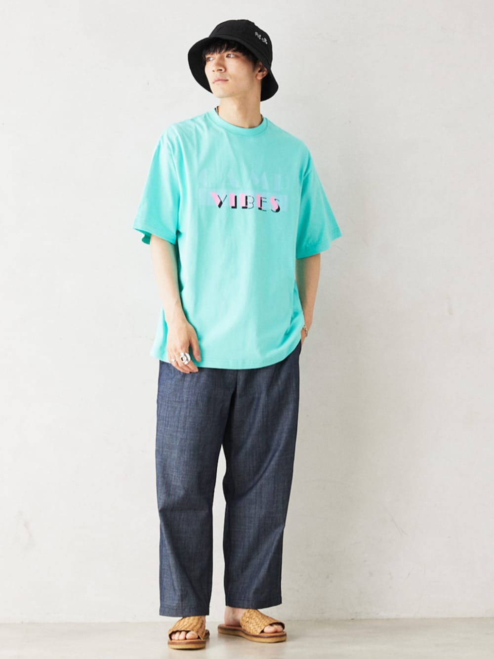 身長:176cm 体型:標準型 普段着用サイズ:L 年齢:30代 POLeR × relumerelumeのヘビーウェイトTシャツ。 レトロなグラフィックTシャツは夏のムードを高めてくれる主役級アイテム。 足元はサンダルでリラックスしたスタイルに。 《Tシャツ》 着用サイズ:L 着用サイズ感:程よくゆとりがあるサイズ感。 《パンツ》 着用サイズ:L 着用サイズ感:セミワイドなシルエットです。