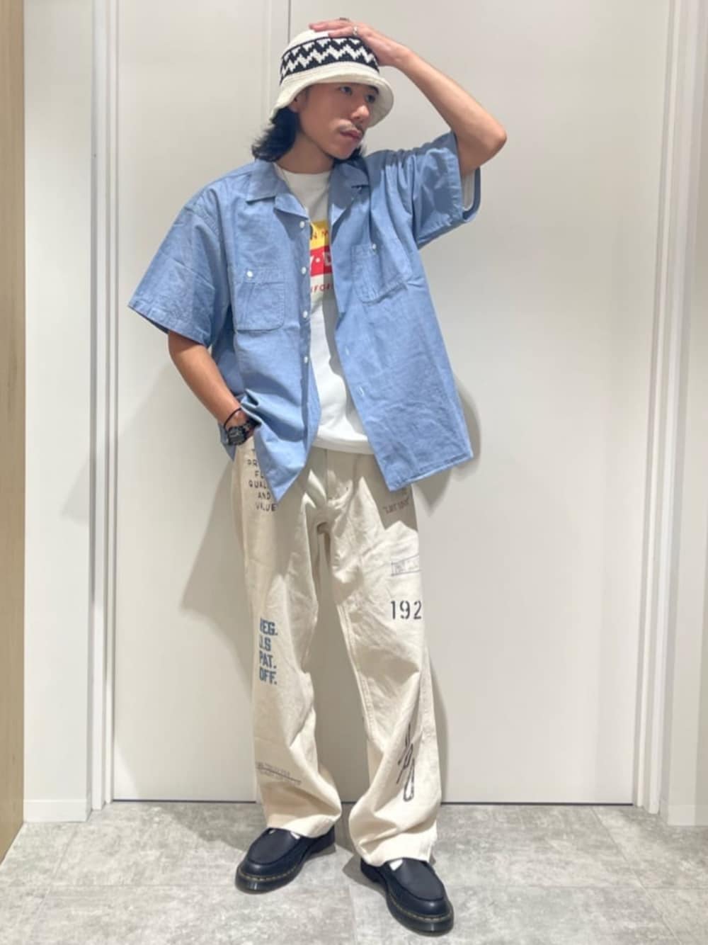 PAYDAY=給料日だそうです 身長:172cm/体格:細身/普段サイズ:M/年齢:20代 シャツ 着用サイズ:M サイズ感:ゆったり 着心地:綿100%のしっかりしたシャンブレー生地 ワークシャツ×シャンブレー生地の古着好きにはたまらない1着 大きめなサイズ感でガバッと羽織ってたらかっこいいです! トップス 着用サイズ:M サイズ感:ややゆったり 着心地:着心地の良いコットンTシャツ インナーに入れてても目を引くようなインパクトのあるプリントです! パンツ 着用サイズ:M サイズ感:ゆったり 着心地:柔らかく薄手で夏にぴったりな生地感 古着市場で人気の高いデザインでこの生地感を待ってました! 是非参考にして下さい!! Instagram→@jsr___akashi