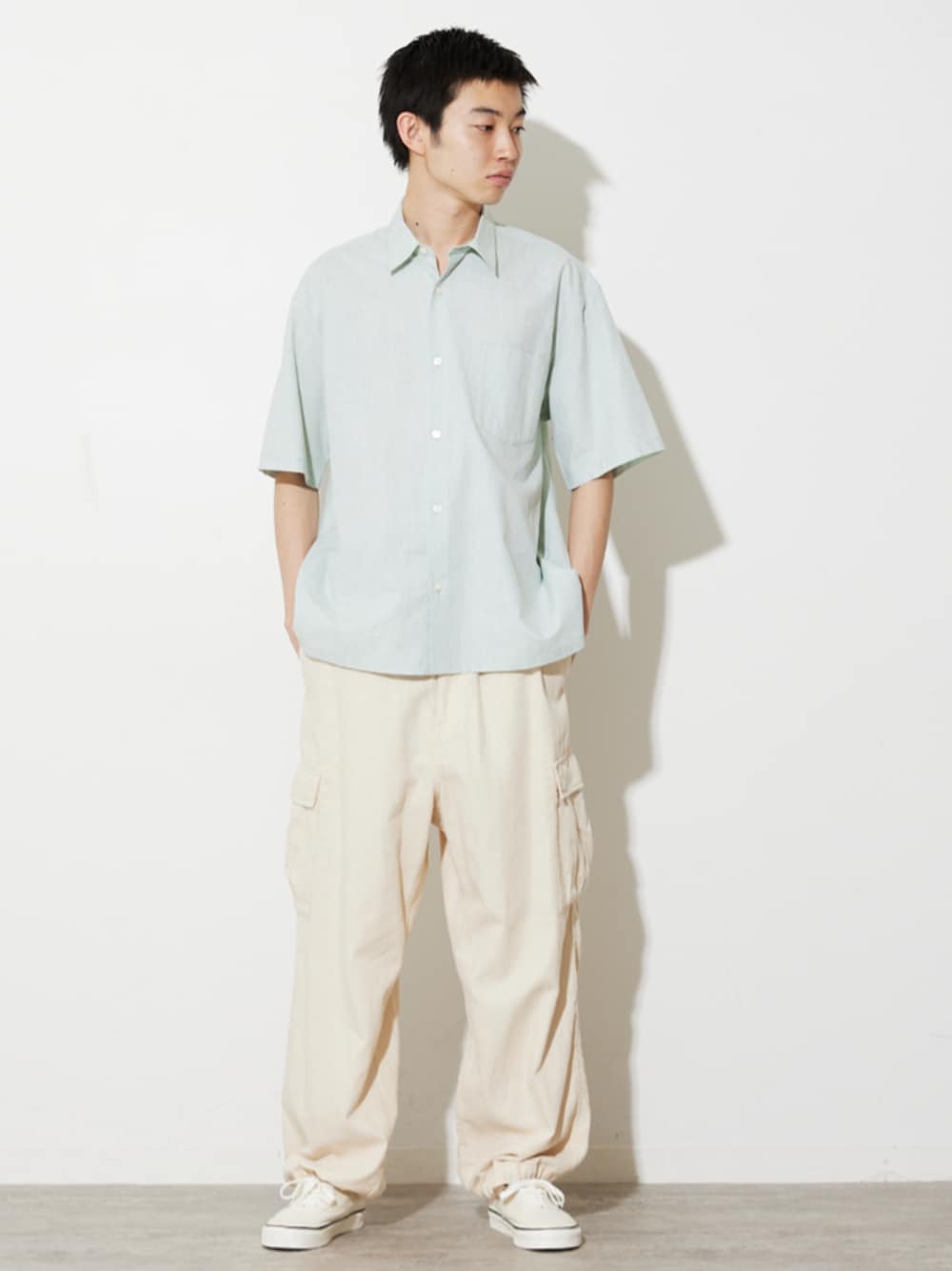 【ZOZO限定】コットンリネン レギュラーカラー半袖シャツ ・春夏メインで着用可能な清涼感溢れるコットンリネン素材。 ・様々なアイテムと相性が良い ・とにかく着まわせる。 シルエットはレギュラーシルエットを採用することで、敢えてベーシックな雰囲気に落とし込みました。 ベーシックなレギュラーカラーは幅広いスタイリングに対応可能。 綿混紡なので、がさつきを抑えつつ吸水性、速乾性はそのままなのもうれしいポイントです。