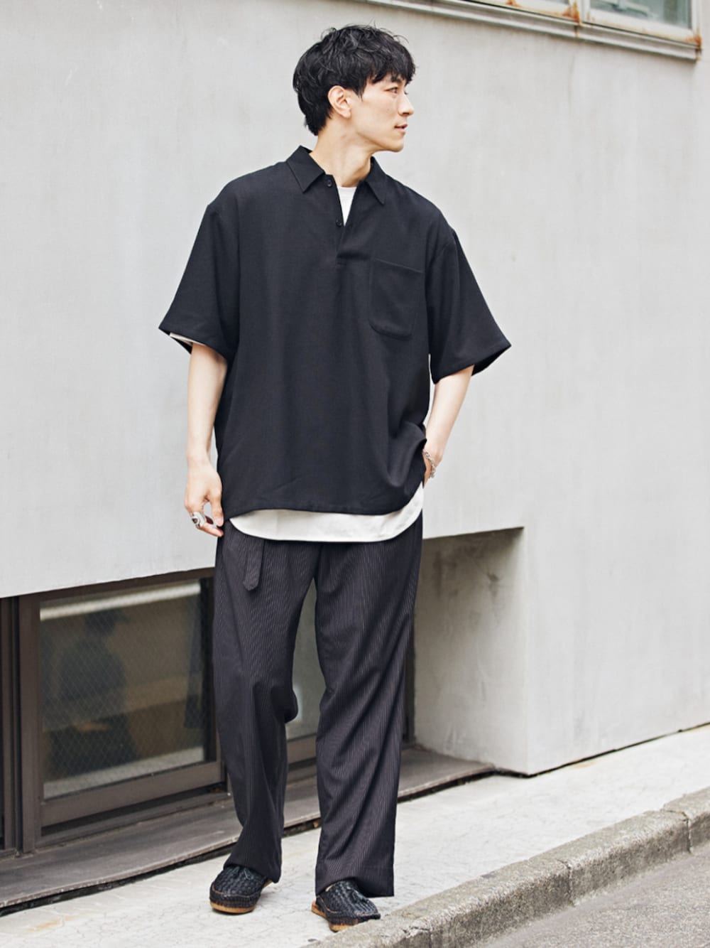 身長:176cm 体型:標準型 普段着用サイズ:L 年齢:30代 きれいめ、カジュアルどちらのスタイルでも使うことができるオーバーサイズのポロシャツ。 麻のようなナチュラル感とドライな質感なので、一般的なポロシャツよりもキレイめに着こなすことが可能。 シャツのような感覚で着れるので、オーバーサイズでもだらしなく見えず◎ 《ポロシャツ》 着用サイズ:L 着用サイズ感:ゆとりのあるサイズ感です。 《Tシャツ》 着用サイズ:L 着用サイズ感:ゆったりしたリラックス感のあるサイズ感です。