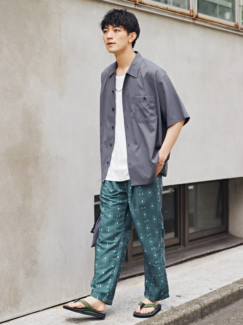 JOURNAL STANDARD relume(JOURNAL STANDARD relume 本社)のスラックス「《追加》総柄イージーパンツ ”プロヴァンス”」を使ったコーディネート