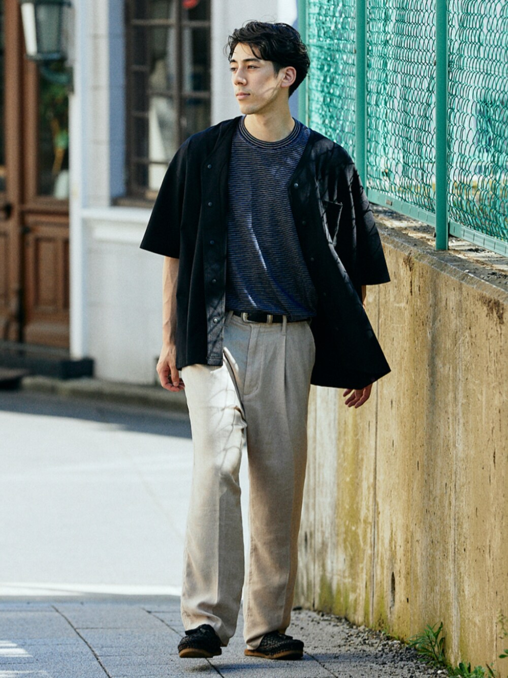 身長:179cm 体型:標準型 普段着用サイズ:L 年齢:20代 吸水速乾、抗菌防臭の複合機能ファブリックを使用したEZ(イージー)ベースボールシャツ。 首元がスッキリとしたベースボール型のシャツなので、夏のレイヤードスタイルにピッタリ。 イージーケアに加え、汗冷えや濡れ戻りを抑えて衣服内をドライな状態が保てたりと機能性抜群です。 《シャツ》 着用サイズ:L 着用サイズ感:ゆったりとしたサイズ感です。 《パンツ》 着用サイズ:L 着用サイズ感: 股上ゆったりした楽な履き心地。