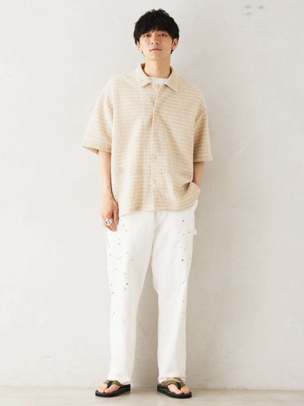 身長:176cm 体型:標準型 普段着用サイズ:L 年齢:30代 柔らかくてさらっとした風通しのいい特徴のインド綿を使ったレースシャツ。 オーバーサイズでも、着丈がややゆったりとしているので、ワイドなボトムとも合わせやすくて◎ 吸水性に優れたインド綿は、暑い夏にはピッタリ。 《シャツ》 着用サイズ:M 着用サイズ感:ややゆったりとしたサイズ感。 《デニムパンツ》 着用サイズ:L 着用サイズ感:全体的にワイド、丈がやや長いサイズ感です。