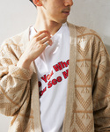 身長:179cm 体型:標準型 普段着用サイズ:L 年齢:20代 前回に引き続き、大きな柄を大胆にあしらった総柄カーディガンがアップデートして今シーズンも登場! レトロでクラシカルな柄なので、羽織るだけでさまになる一着。 ゆったりとしているので、羽織りやすく、冬はアウターのインナーとしても活躍します。 《カーディガン》 着用サイズ:L 着用サイズ感:身幅と肩幅広めでゆったりしたサイズ感 《Tシャツ》 着用サイズ:L 着用サイズ感:ゆったりとしたサイズ感です。