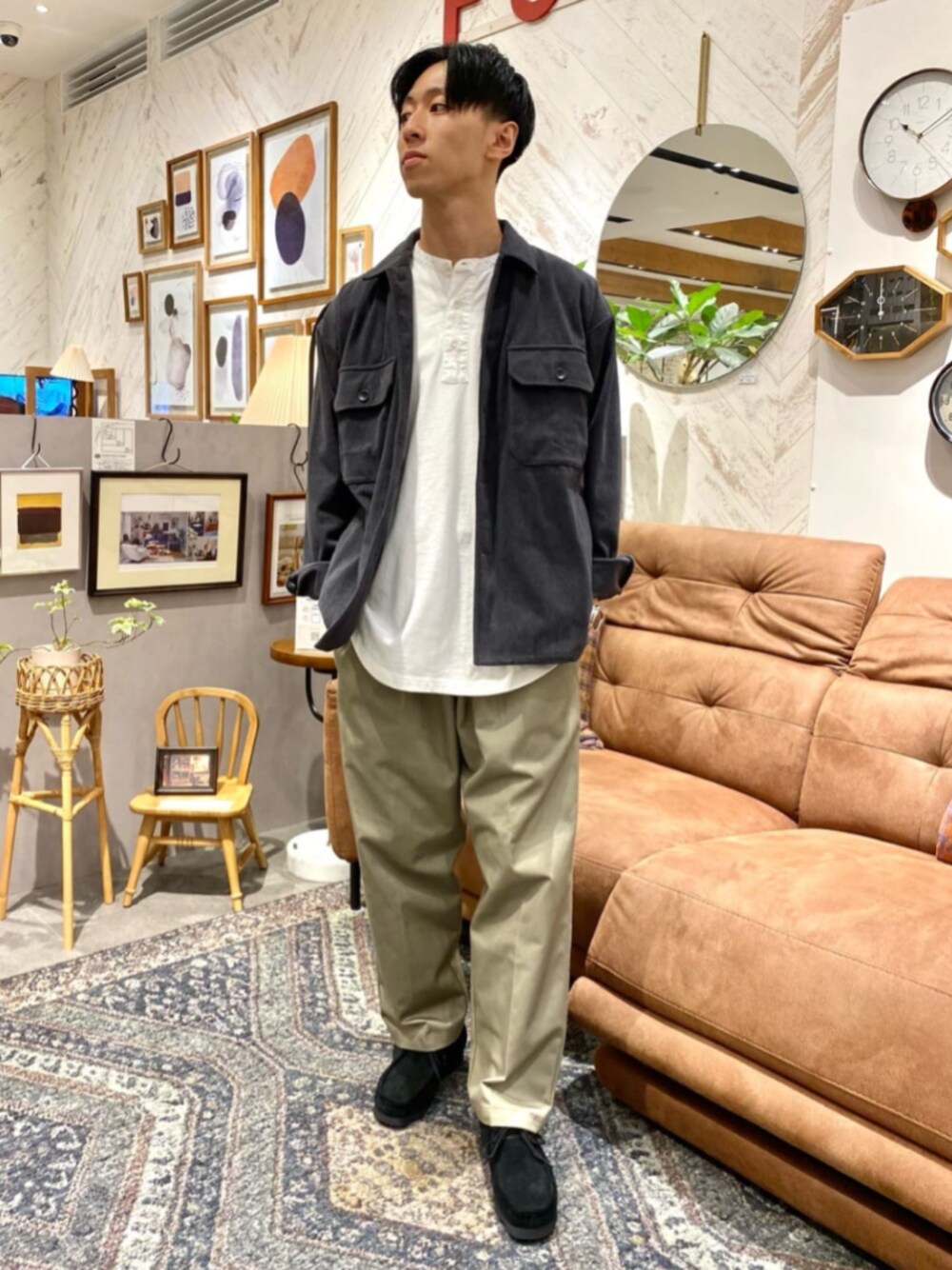 年齢:20代 身長:173cm 体型:標準 普段サイズ:L ▼一言コメント ポケット付きのシャツジャケットタイプは羽織りとしては万能です! 中にスウェットやパーカーも着込めるぐらいゆったりとした形なので着れるシーズンは長いです◎ instagram @retakuya ↑こちらでもスタイリングやrelume商品の情報発信してます!